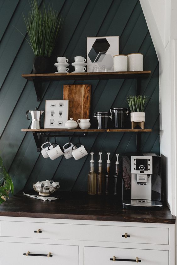- Kreiert eine Kaffee- oder Teestation. Eine solche Station für Kaffee oder Tee ist nicht nur praktisch, sondern ist auch dekorativ. Bei der Gestaltung könnt ihr kreativ sein und nach eurem Geschmack entscheiden. Arbeitet auch hier wieder mit Vorratsdosen, um Verpackungen zu vermeiden. Hier seht ihr eine von vielen Ideen. Schaut euch auf Pinterest oder Instagram Bilder an, wenn ihr nach anderen Stilen sucht.