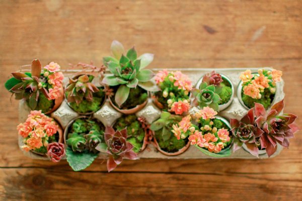 Auch hier könnt ihr die Eierschalen zuvor bemalen oder ihr belasst sie so wie sie sind. Dies gibt einen rustikalen Touch. Nun gebt ihr etwas Erde in die Schalen und pflanzt die kleinen Pflanzen hinein. Die so entstandenen Blumentöpfe könnt ihr wieder in Eierkartons oder Eierbechern dekorativ arrangieren.